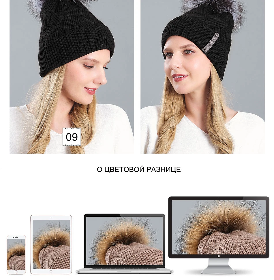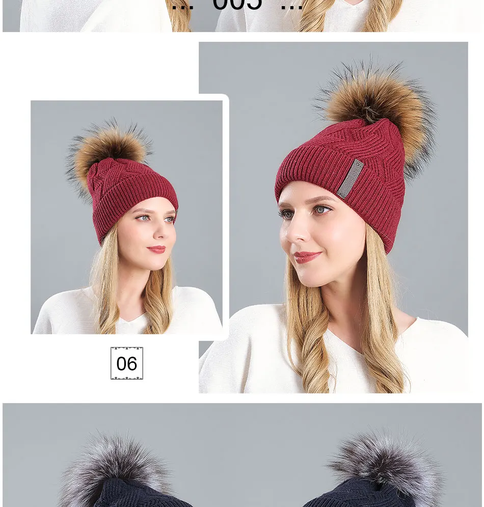Женская шерстяная шапка из меха енота колпачок для помпонов Высококачественная