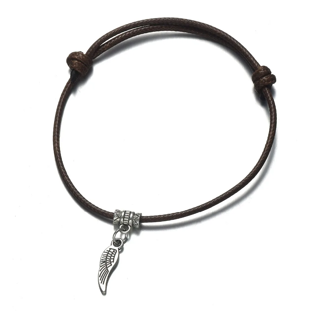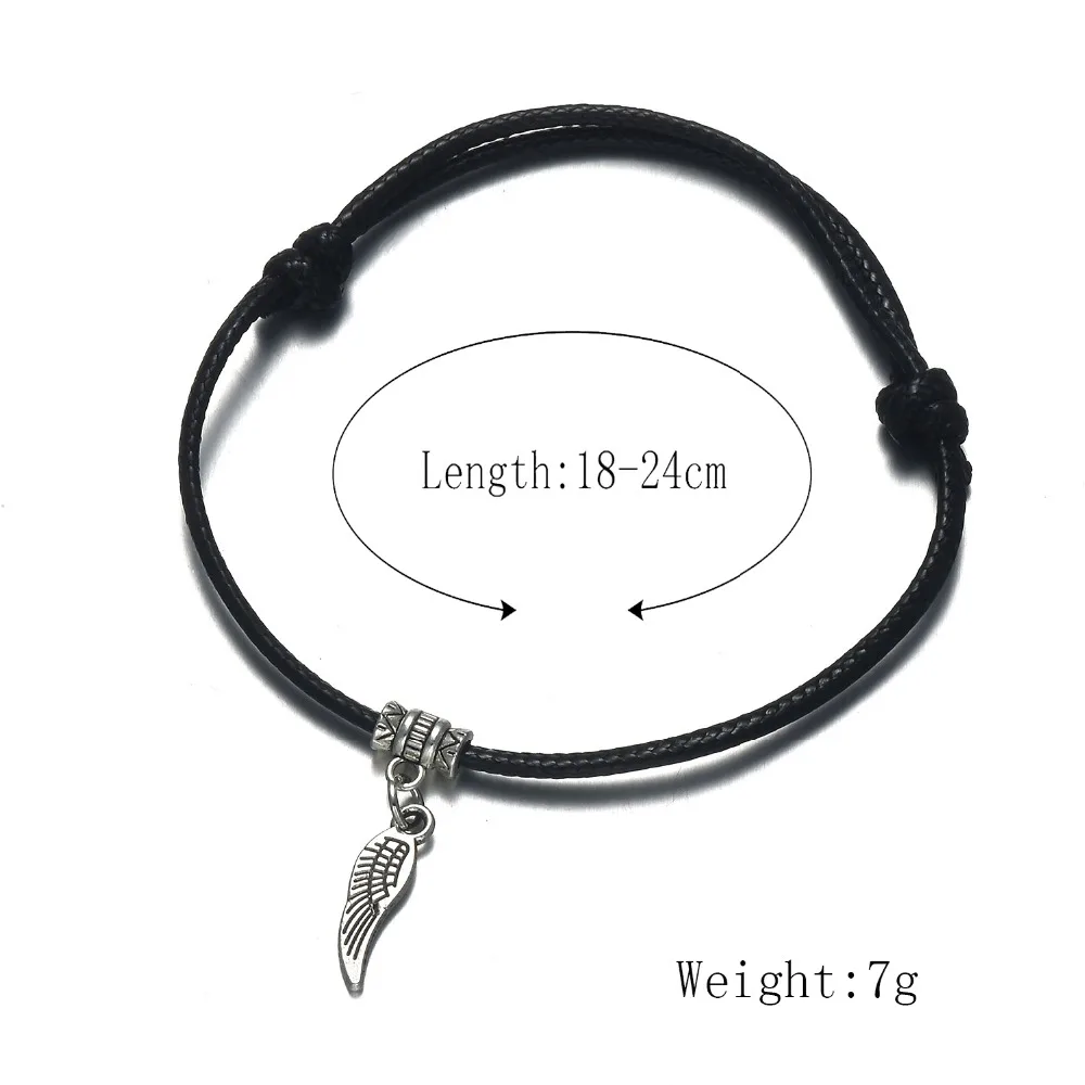 Регулируемые Браслеты Lucky Angel Wings для женщин очаровательные черные веревочные