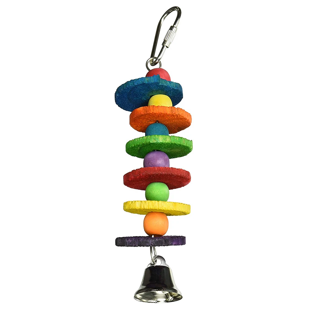 Это игрушка с яркими и разноцветными рисунками, которая может притягивать попугая.