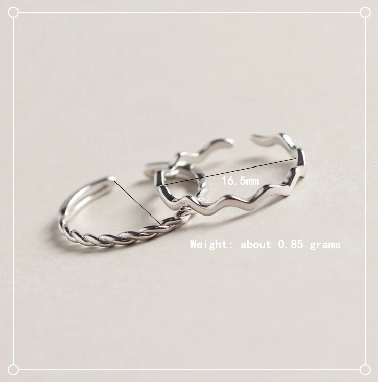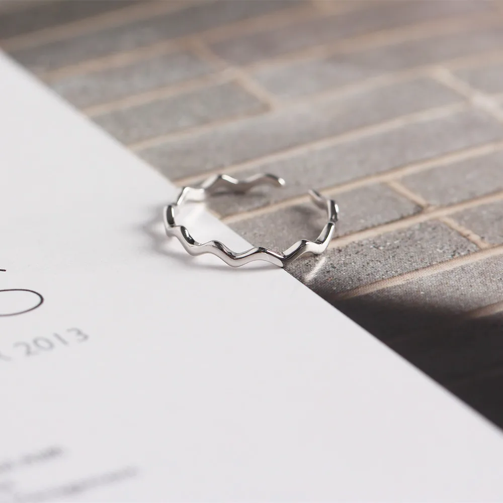 100% 925 пробы Серебряное простое тонкое волнистое кольцо