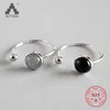 Кольцо из стерлингового серебра 925 пробы с геометрическим шариком холодного ветра и черным агатом