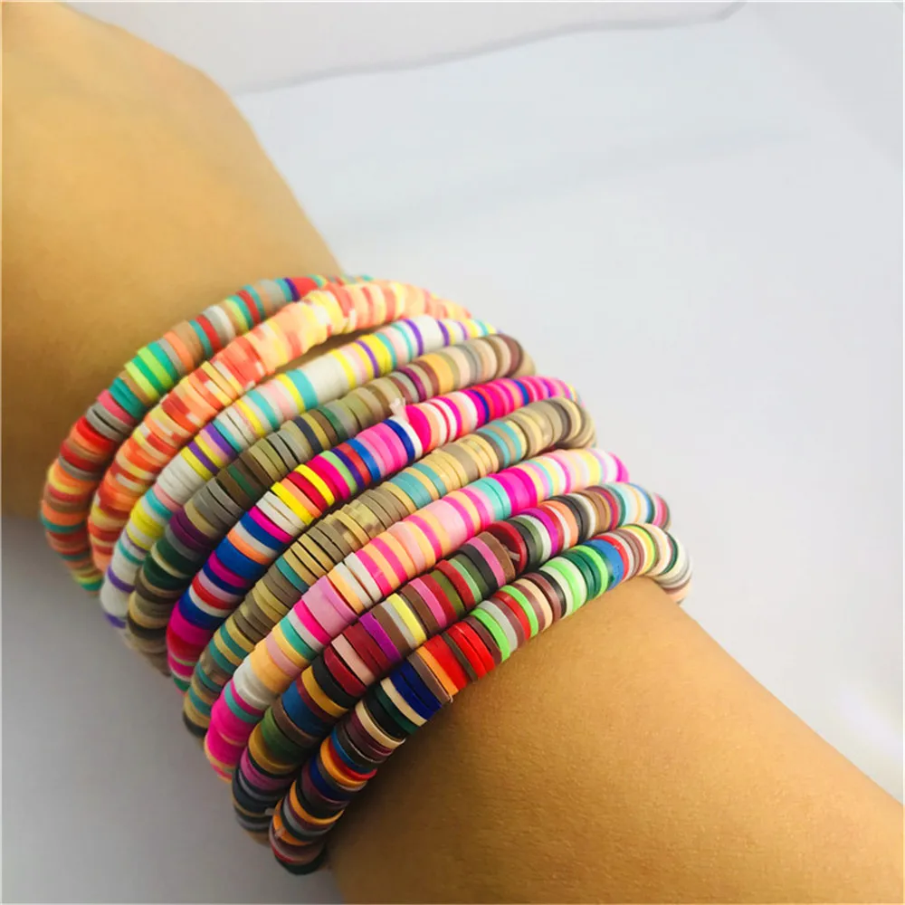 6 мм Полимерная глина запись Heishi бисера стрейч браслет для женщин 2020 Новая мода Лучшие продажи разноцветные пуговицы бусины Серфер ювелирные изделия
