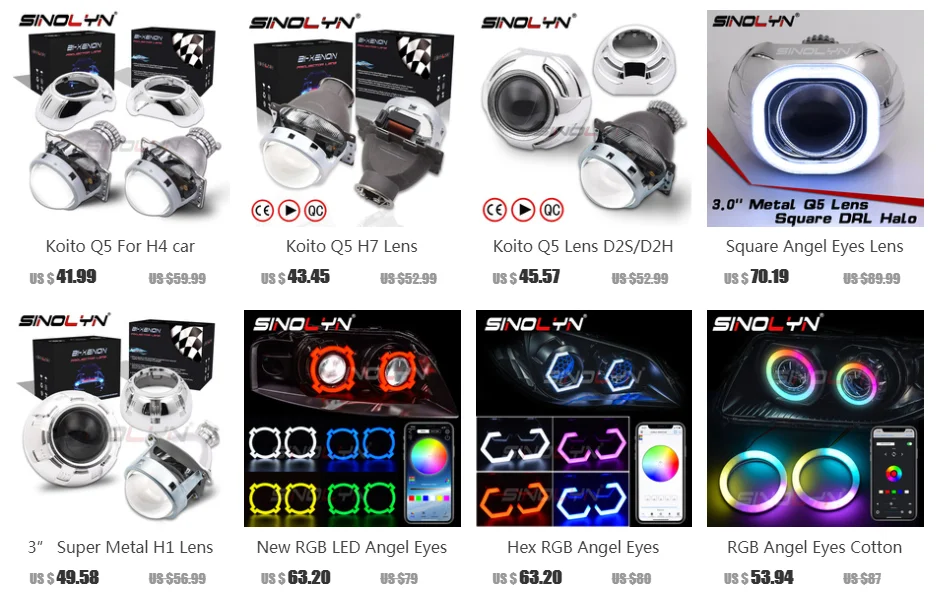 SINOLYN новые Koito Q5 H11 проекторы для H11 ламп. Полностью металлические линзы. Каждый проектор выбирается вручную, чтобы обеспечить Высочайшее качество.