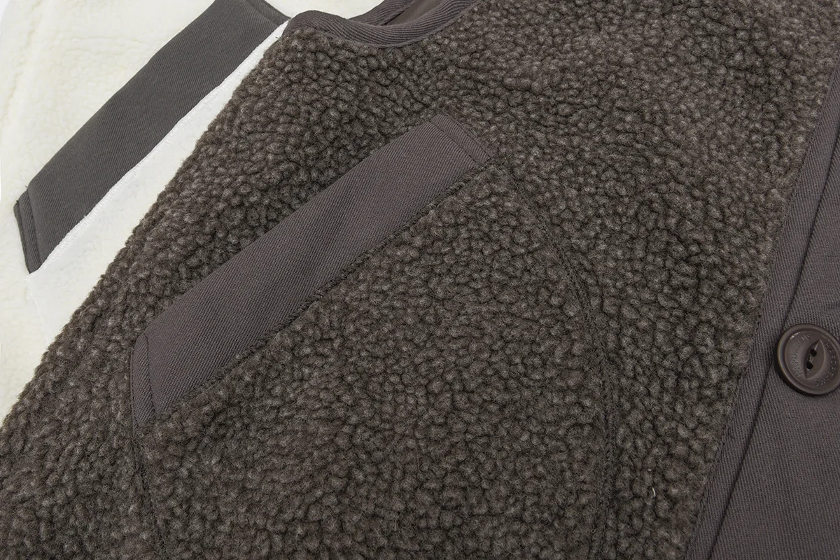 Japanese Casual Mens Fleece Vest White Coffee Color Collarless Waistcoat Big Pockets Cargo Vests Spring Autumn Sleeveless Jacket