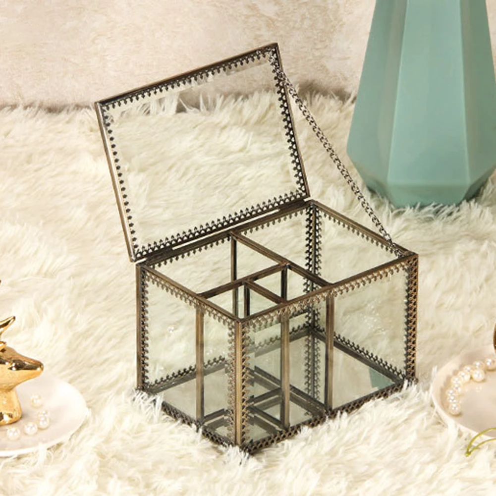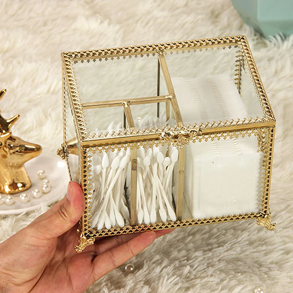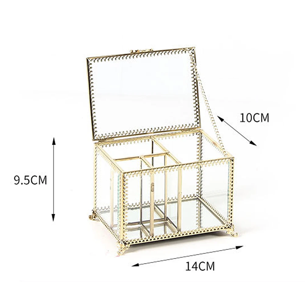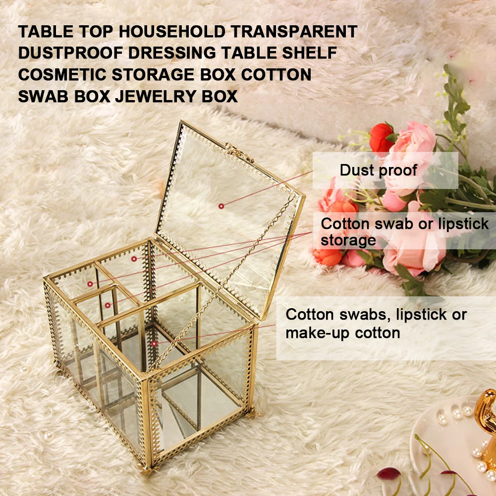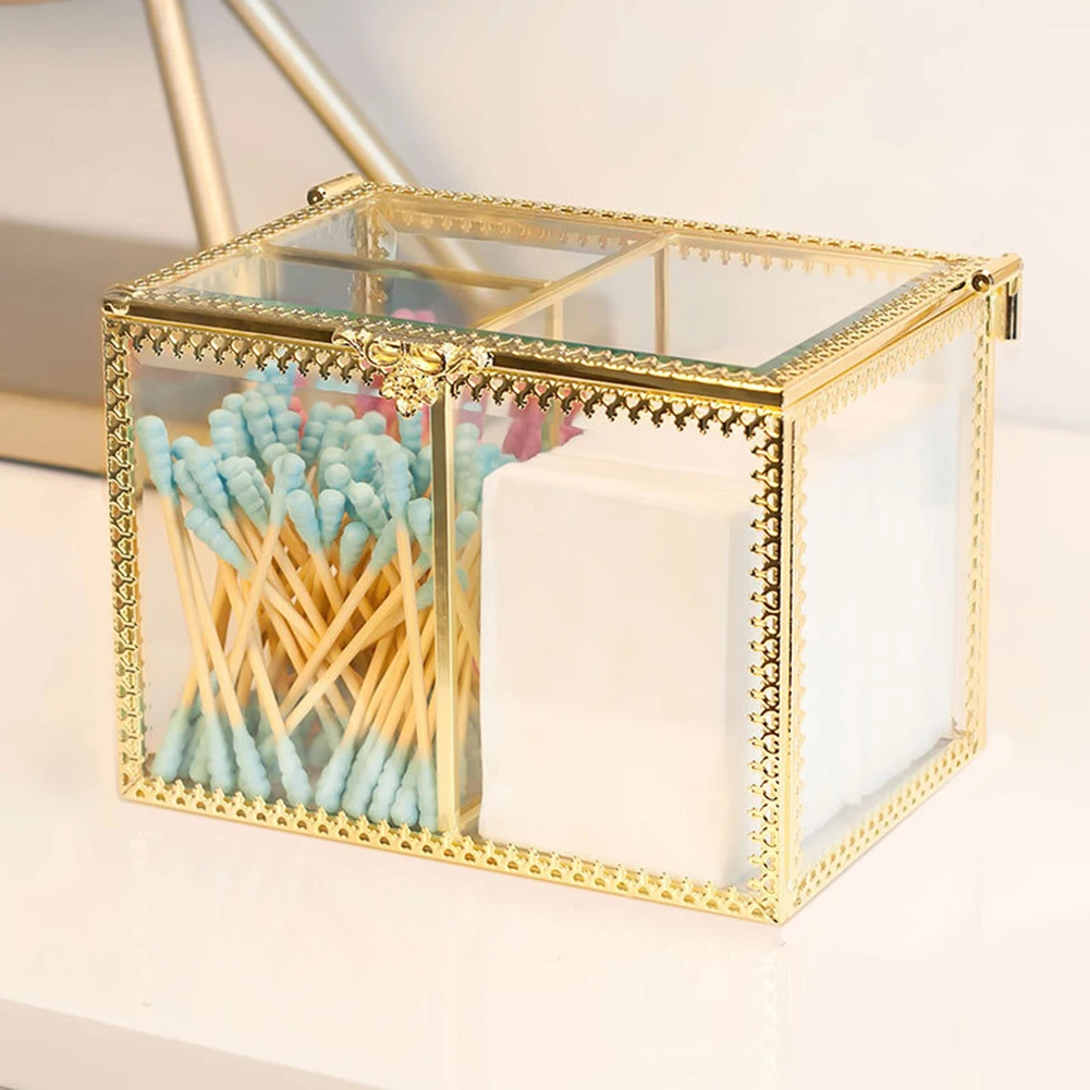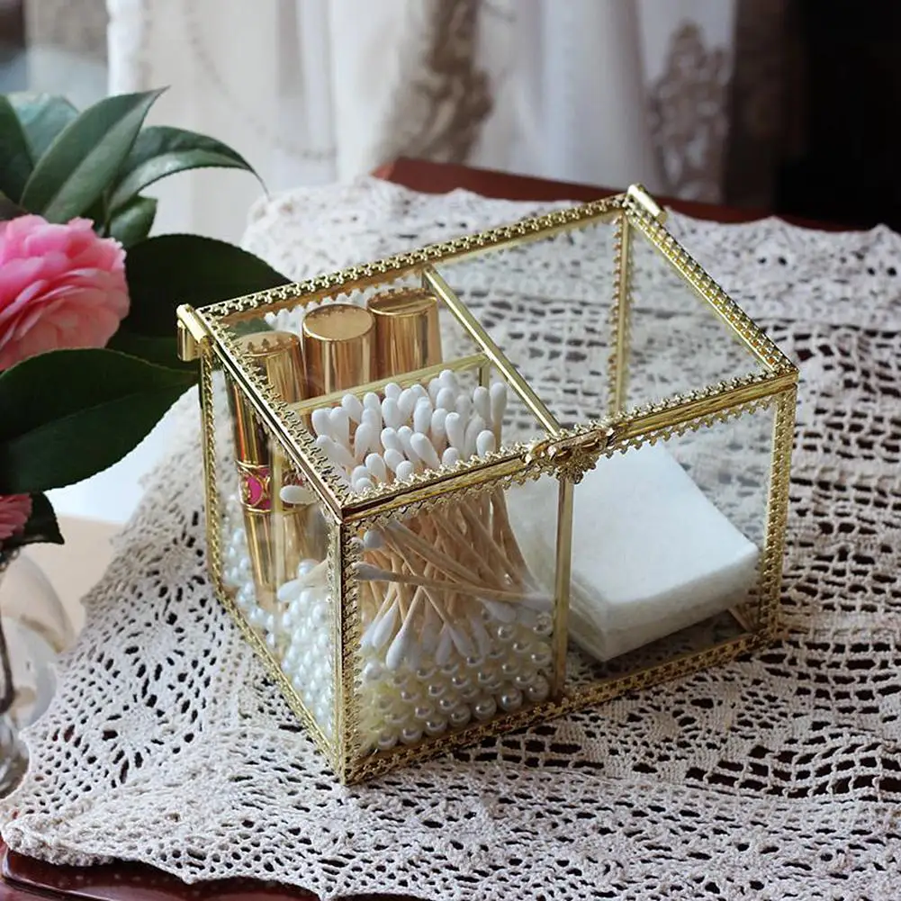 Этот ящик для хранения изготовлен из стекла и Украшен металлической рамкой, которая полна винтажного стиля. Идеально подходит для использования в ванной, спальне, туалетном столике и т. д.