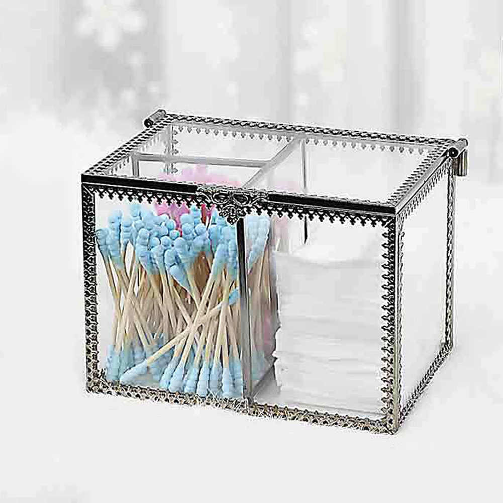 Прозрачная металлическая рамка коробка для хранения ювелирных изделий ватный тампон косметический Чехол-держатель с крышкой