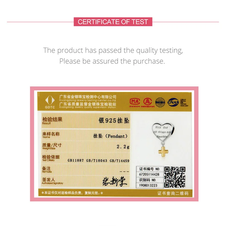 Материал: S925 + покрытая платиной + покрытая золотом Размер: 1,8*1,1 см Описание: Классические элементы в форме сердца в сочетании с крестом, надпись «с Богом все возможно». Означает «Хранитель».