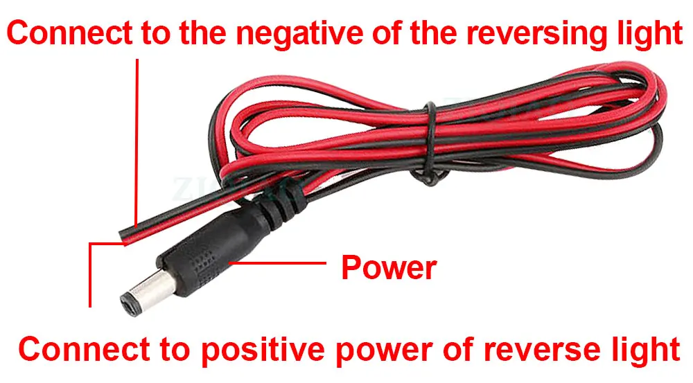 4. Подключите шнур питания (красный и черный) к источнику питания заднего фонаря автомобиля, в то время как Реверсивный, система мониторинга заднего хода автоматически начинает работать, вы можете четко видеть состояние автомобильного хвоста .