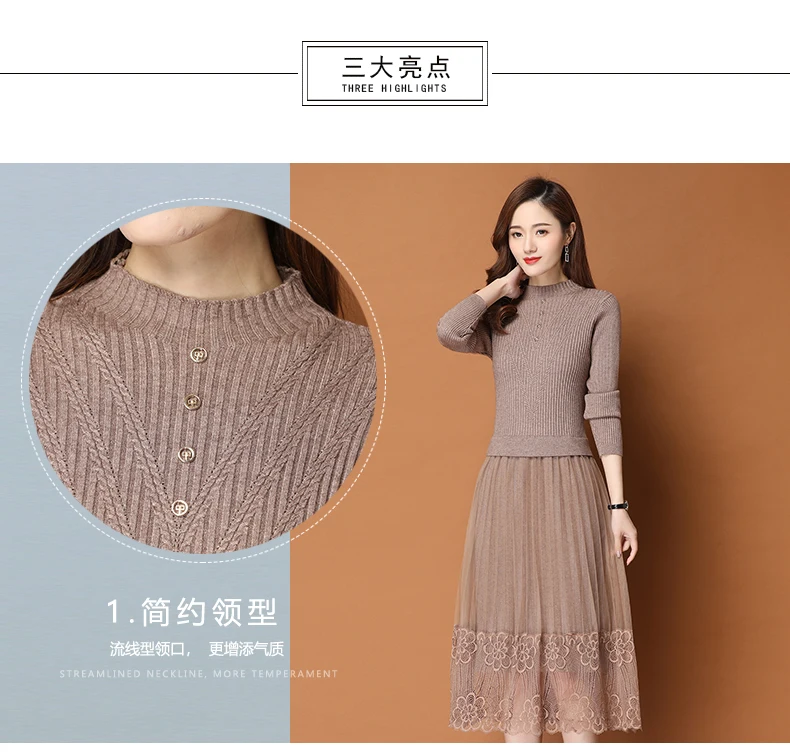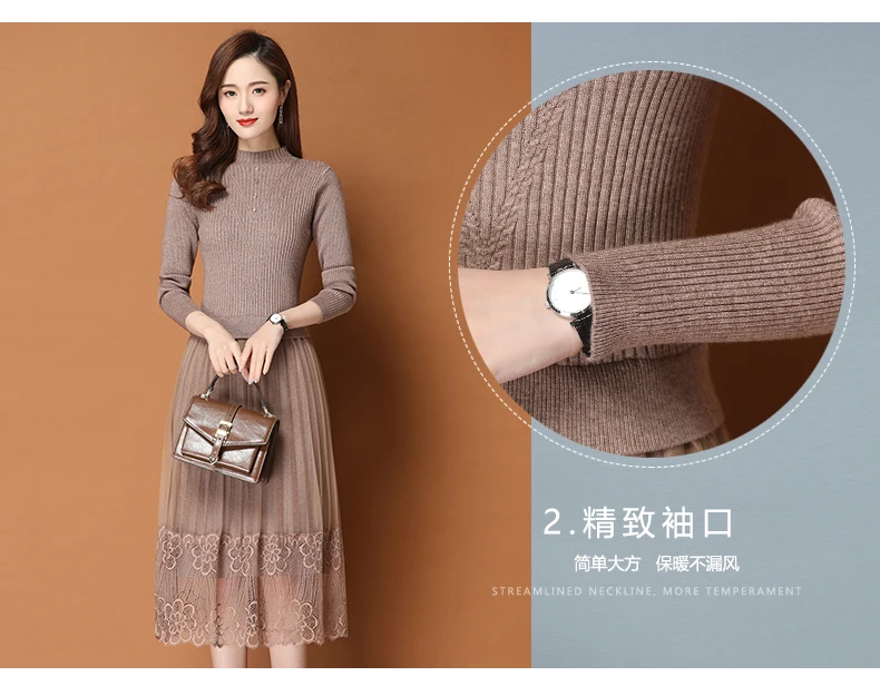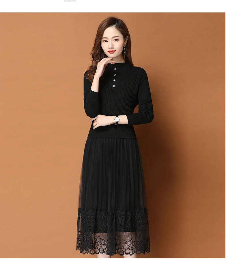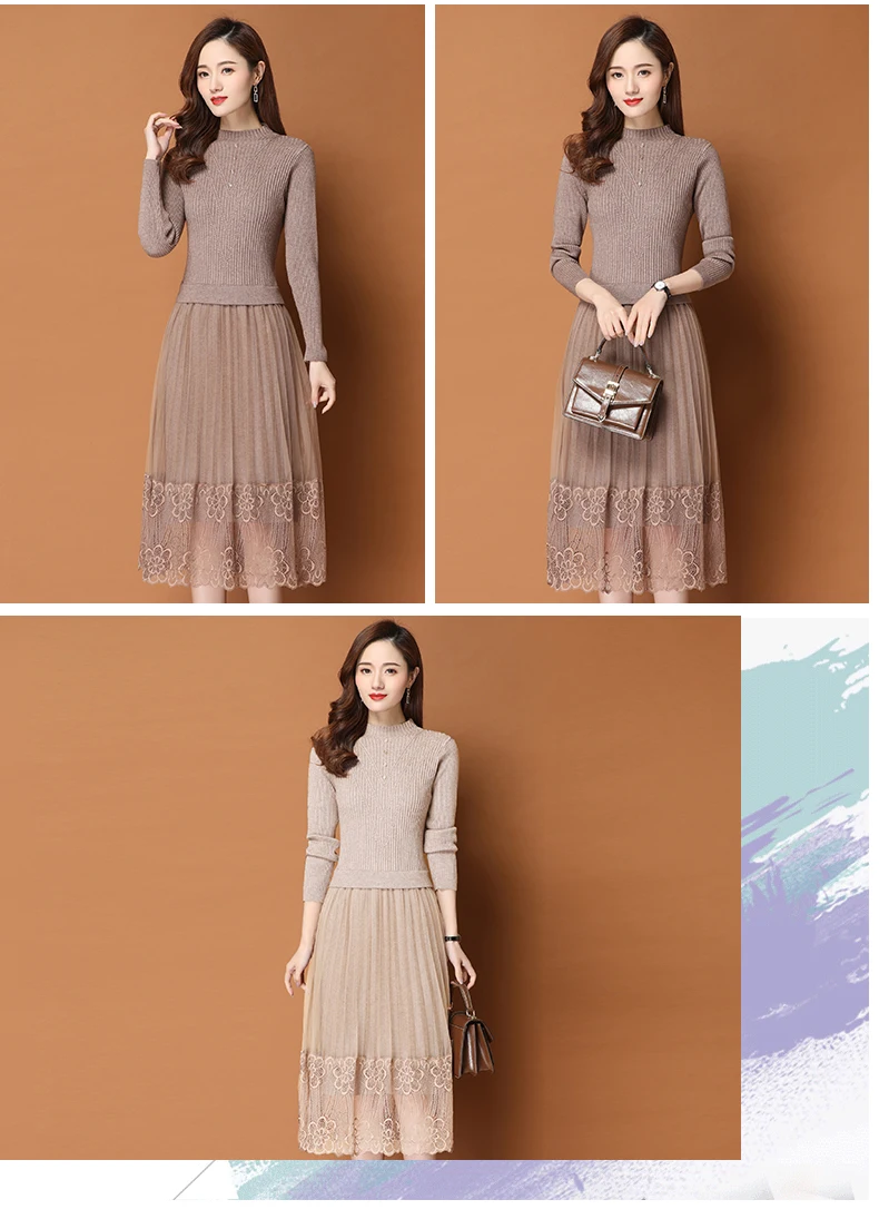 Женское трикотажное платье-свитер средней длины в Корейском стиле | Женская