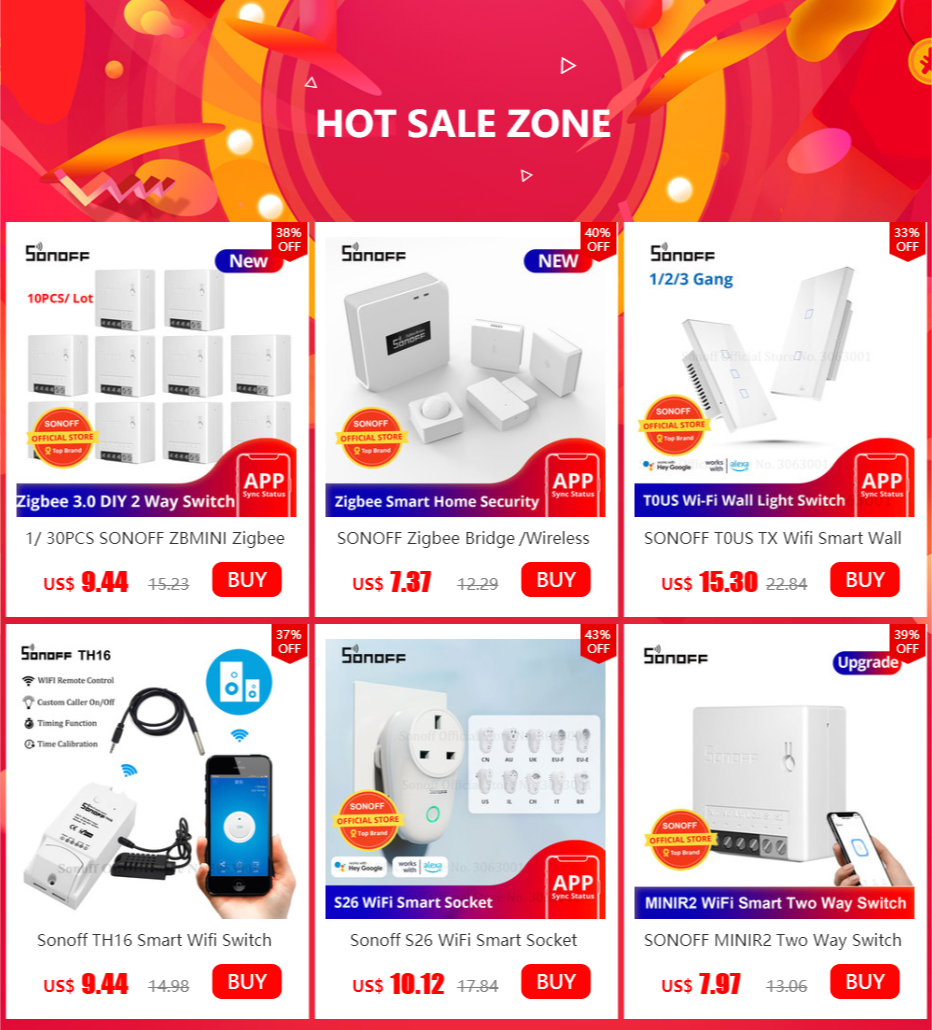 Радиочастотный переключатель Sonoff-версия Sonoff с модулем радиочастотного приемника 433,92 МГц внутри. Этот беспроводной выключатель может использоваться вместе с пультом дистанционного управления RF, что позволяет управлять техникой в помещении. Пульт дистанционного управления позволяет пользователям удаленно включать/выключать подключенные устройства через приложение EWeLink из любой точки мира.