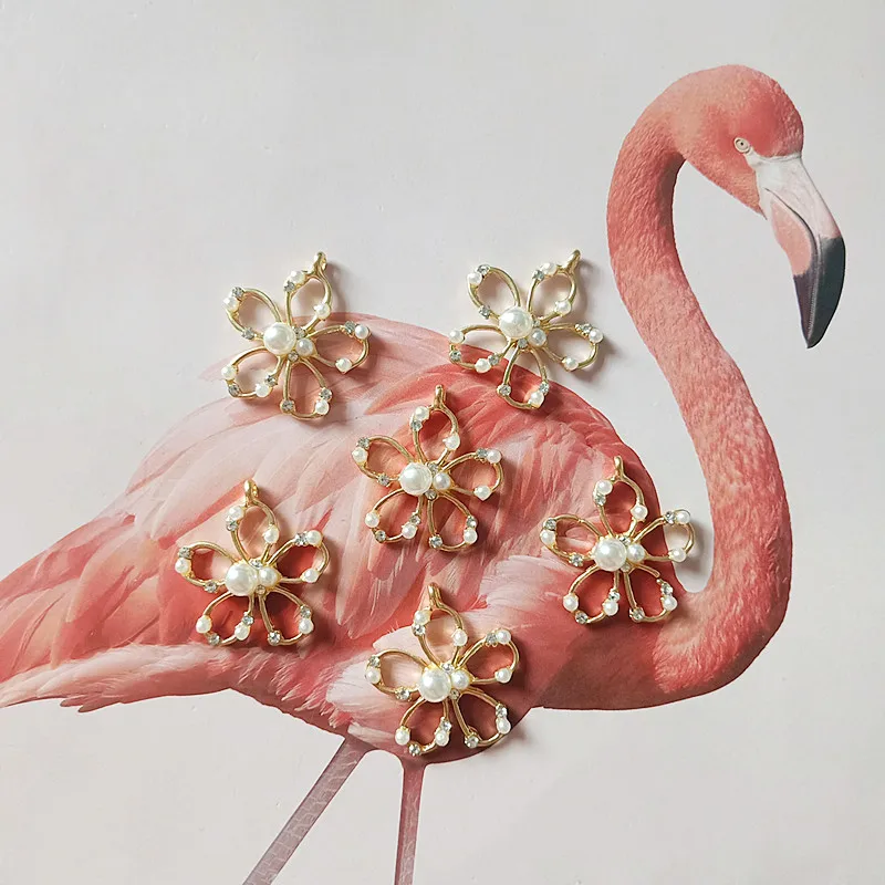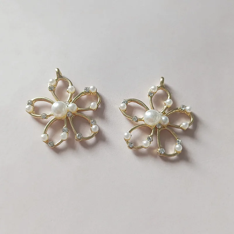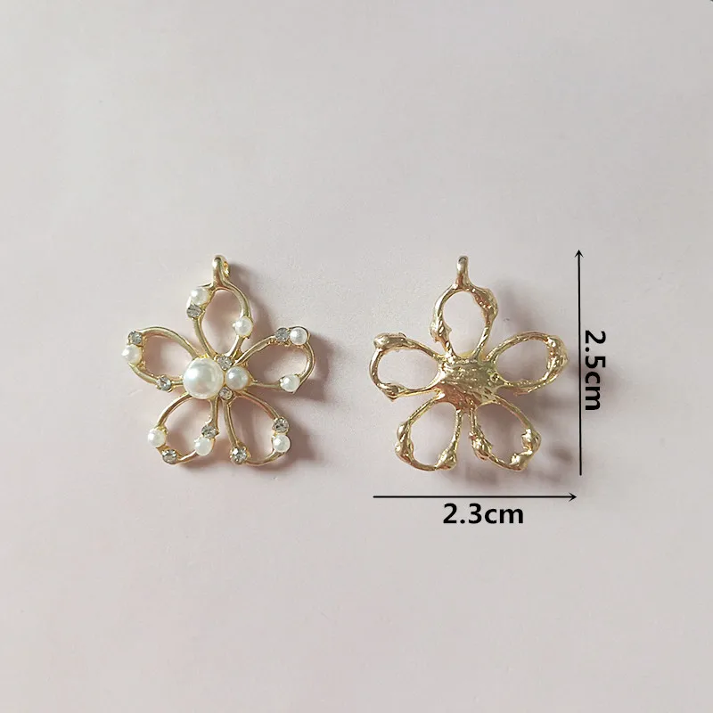10 шт./лот, креативный сплав, Круглый Золотой цветок, жемчуг, стразы, пуговицы, с плоской задней частью, украшения, ювелирные изделия, серьги, чокер для волос, DIY, ювелирные аксессуары, ручная работа для леди, лучший подарок, компоненты для рукоделия