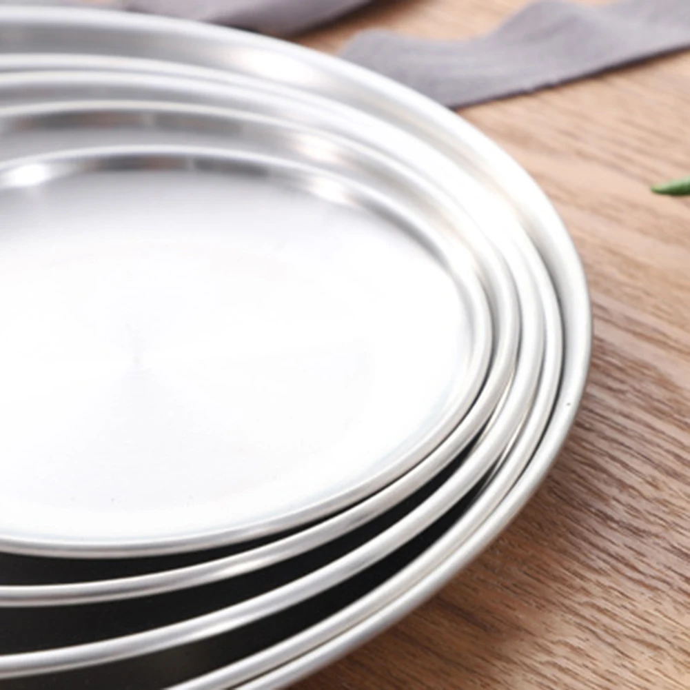Нержавеющая сталь матовая круглая столовая тарелка посуда десерт блюдо для пиццы фруктовый поднос
