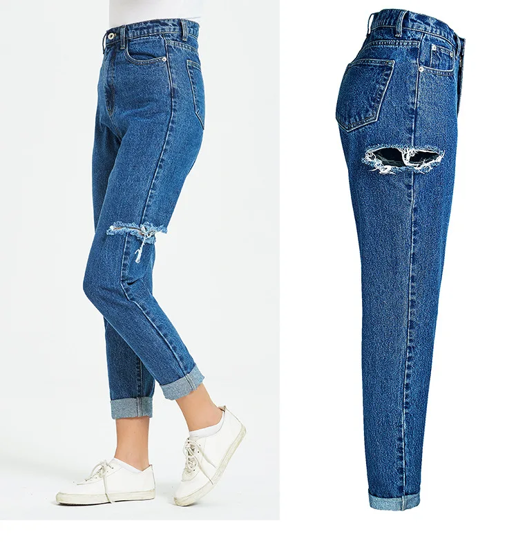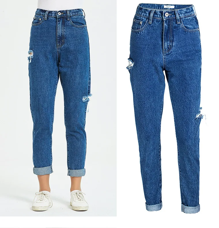 Женские узкие прямые джинсы B2649 корейские облегающие с высокой талией и дырками