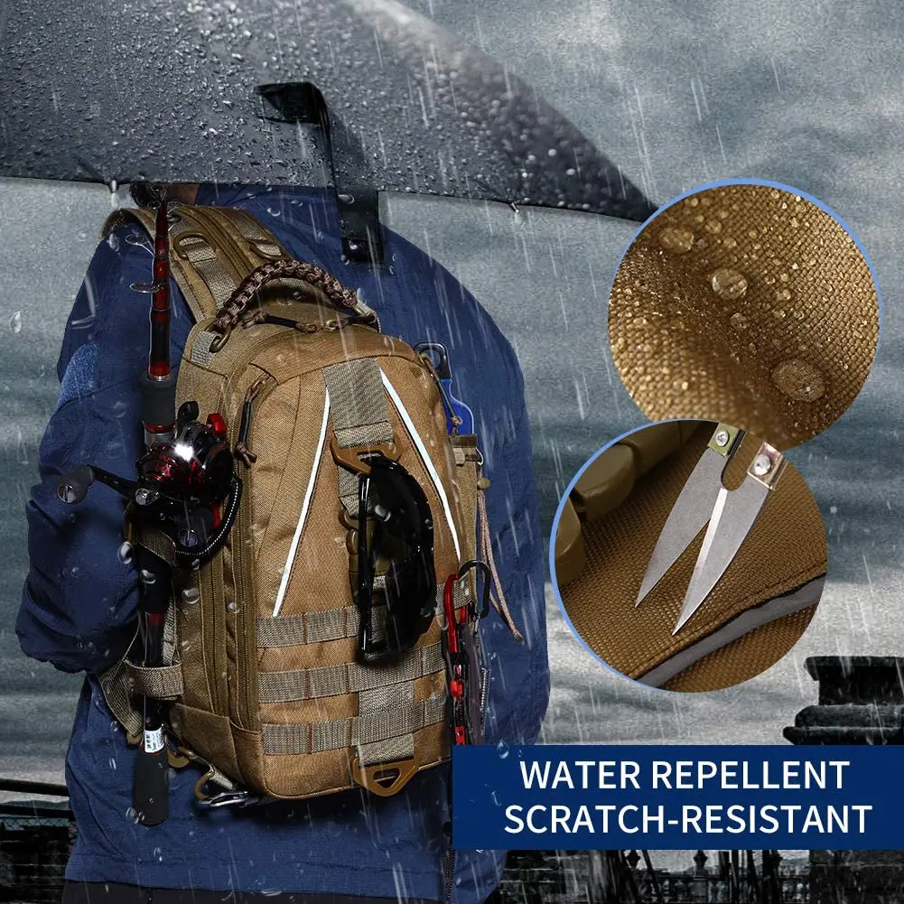 【Water-Resistant and Durable】Made of high density strong nylon fabrics with extra firm stitches, the water-resistant fishing backpack is durable for long-term use. Fasteners, zippers and other accessories are of high quality.