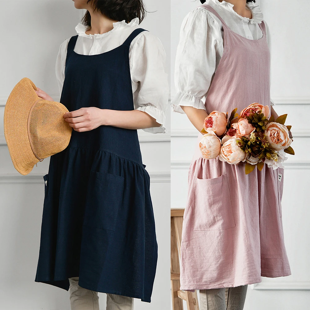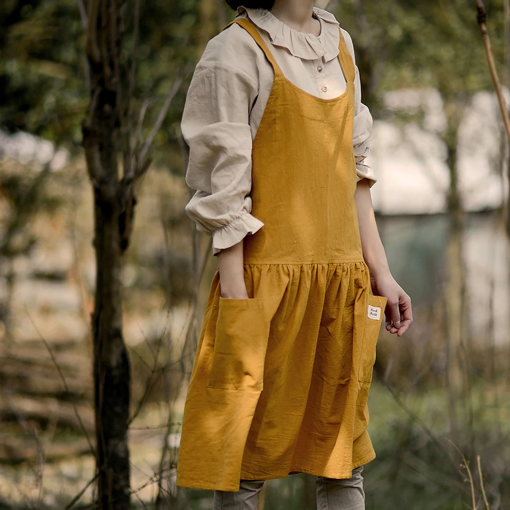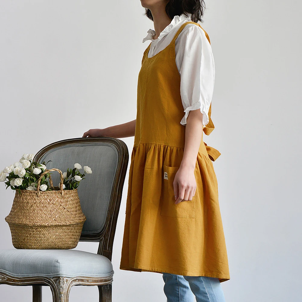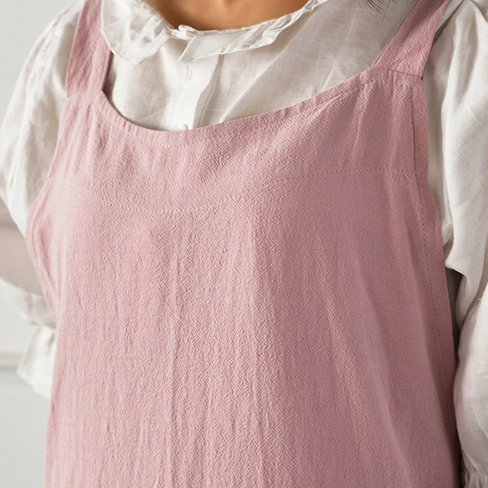 Дизайн сложенного фартука делает фартук элегантным и мягким. Дизайн с перекрестной спинкой предотвращает соскальзывание фартука с плеч. 2 больших передних кармана придают больше практичности фартуку.