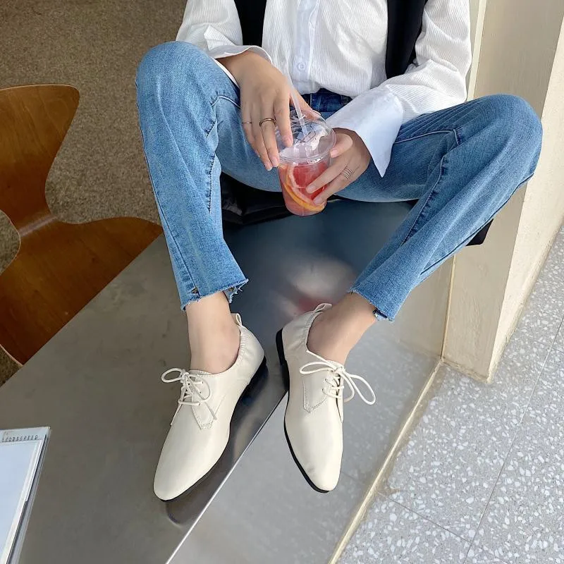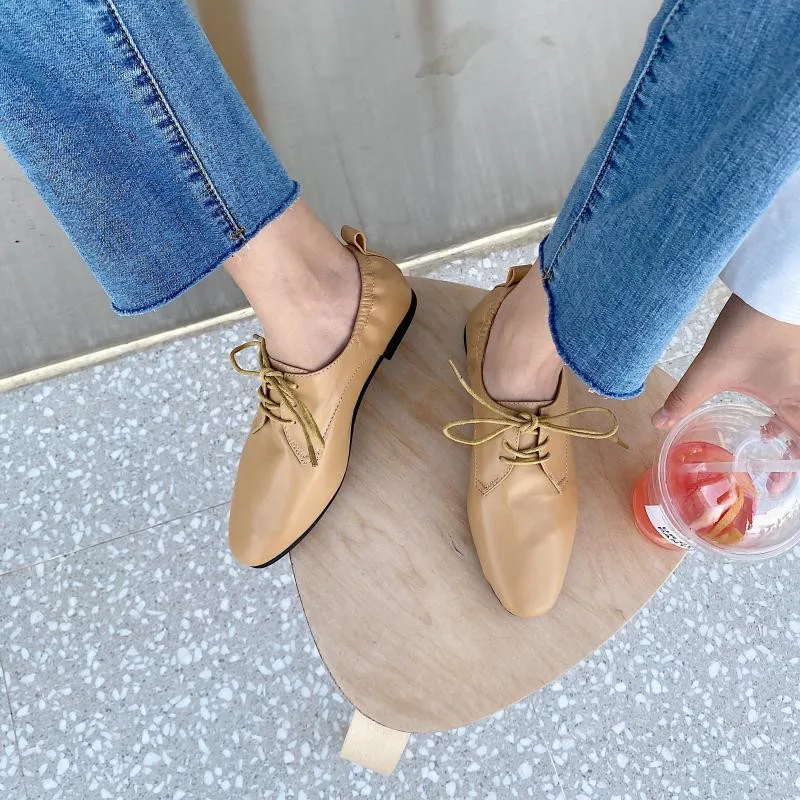 GKTINOO/женские туфли на плоской подошве из натуральной кожи мокасины шнурках