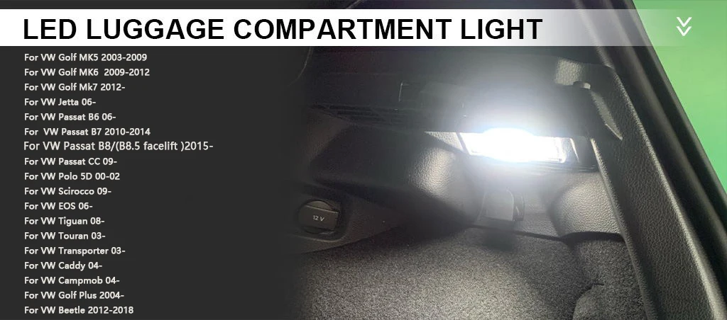 Для замены лампы багажника (boot) на OE #: 1KD947101, 1M0947101A, 5K0947101, 6K0947123, 7L6947101, 7L6947101A