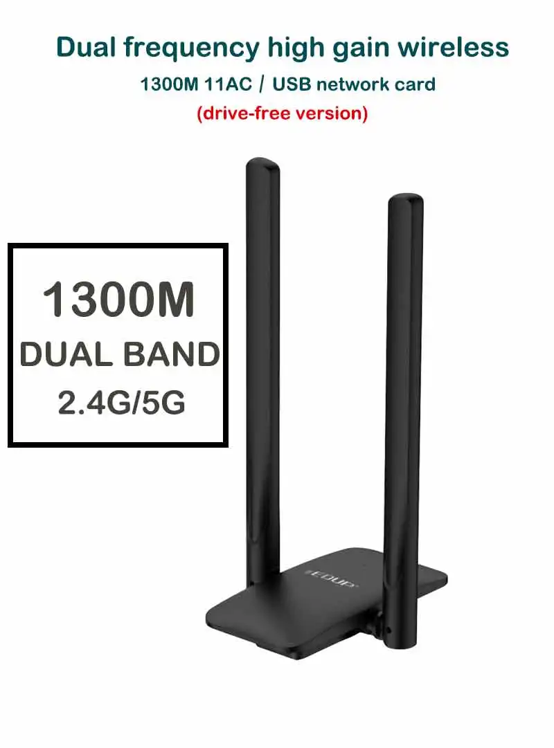 EP-AC1601 802.11B/G/N/AC двухдиапазонный usb-адаптер является идеальным мощным устройством для подключения настольного компьютера к сети Wi-Fi. Он имеет очень тонкий размер и очень удобен в использовании (подключи и работай)! Работает над 2,4G и 5,8G