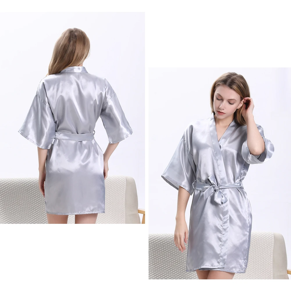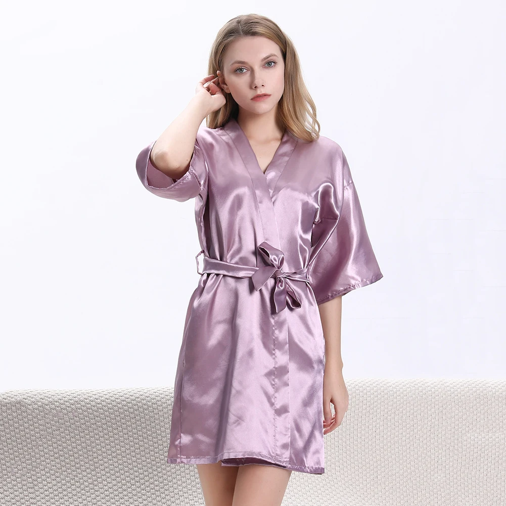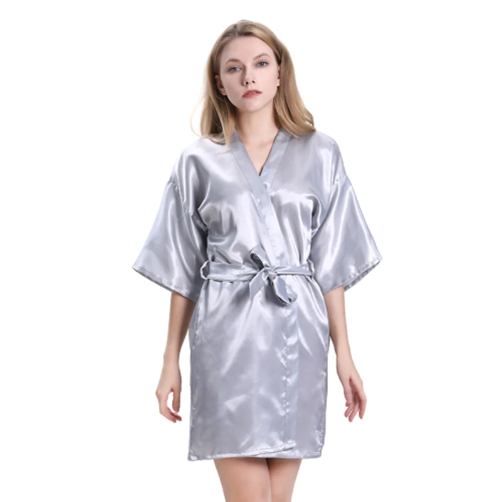 Женское летнее однотонное платье миди из шелка ледяного цвета, банный халат с поясом, одежда для сна