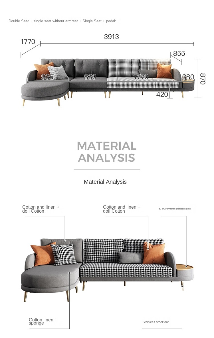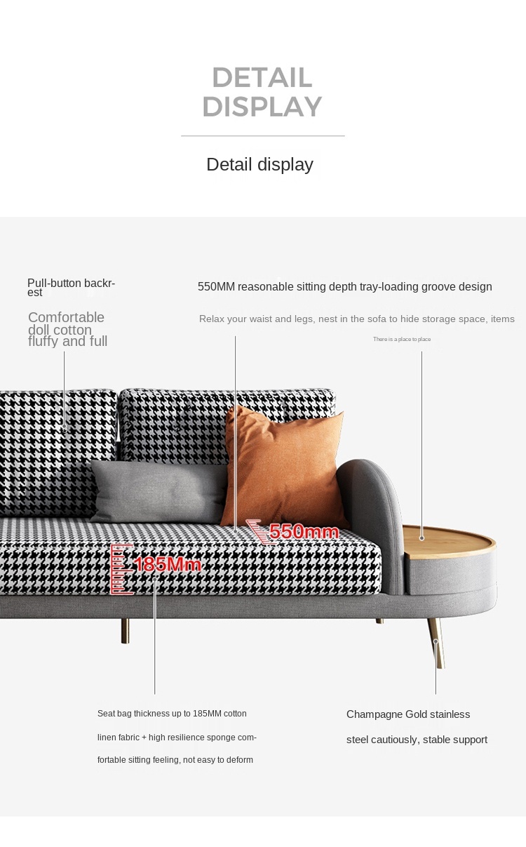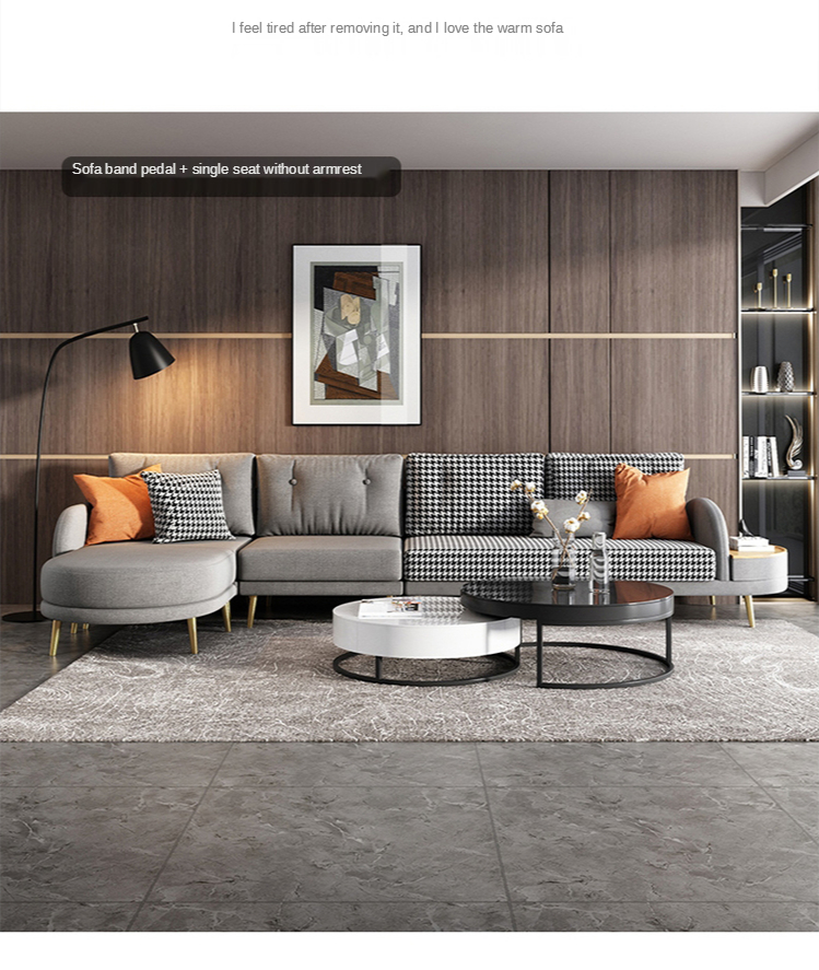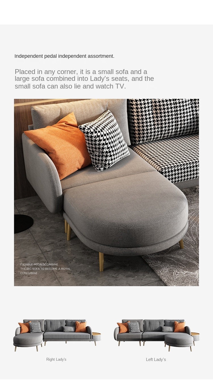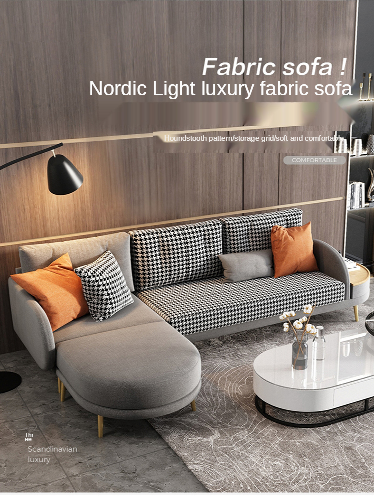 Современный минималистичный тканевый угловой диван-светильник, роскошный диван для гостиной, Скандинавская маленькая Дамская мебель «гусиная лапка»