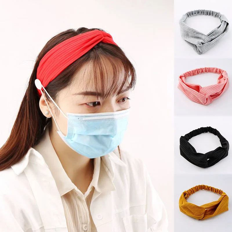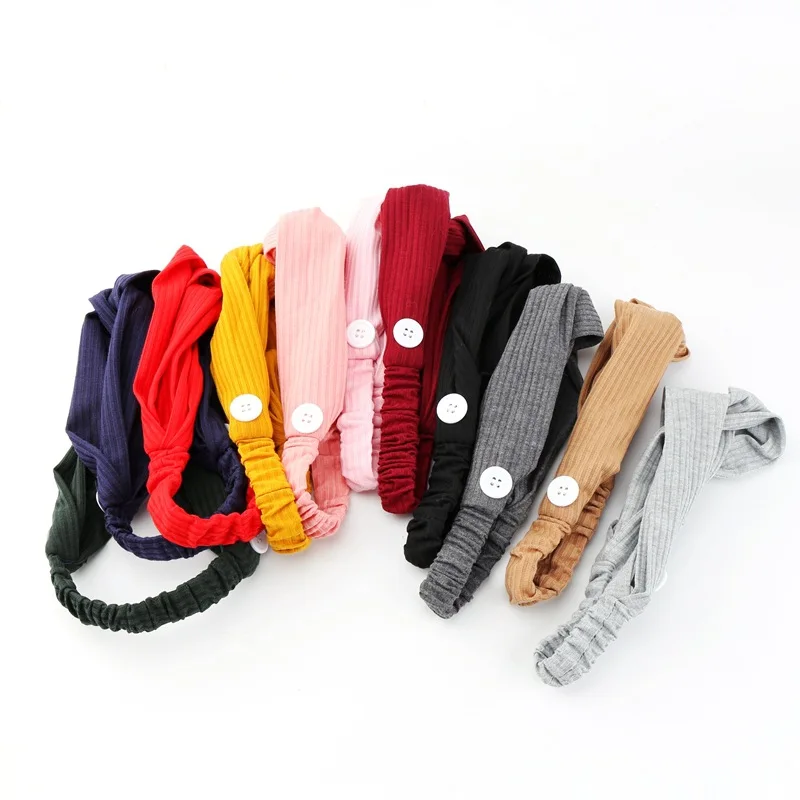 Повязка на голову женская из мягкой ткани, с пуговицами