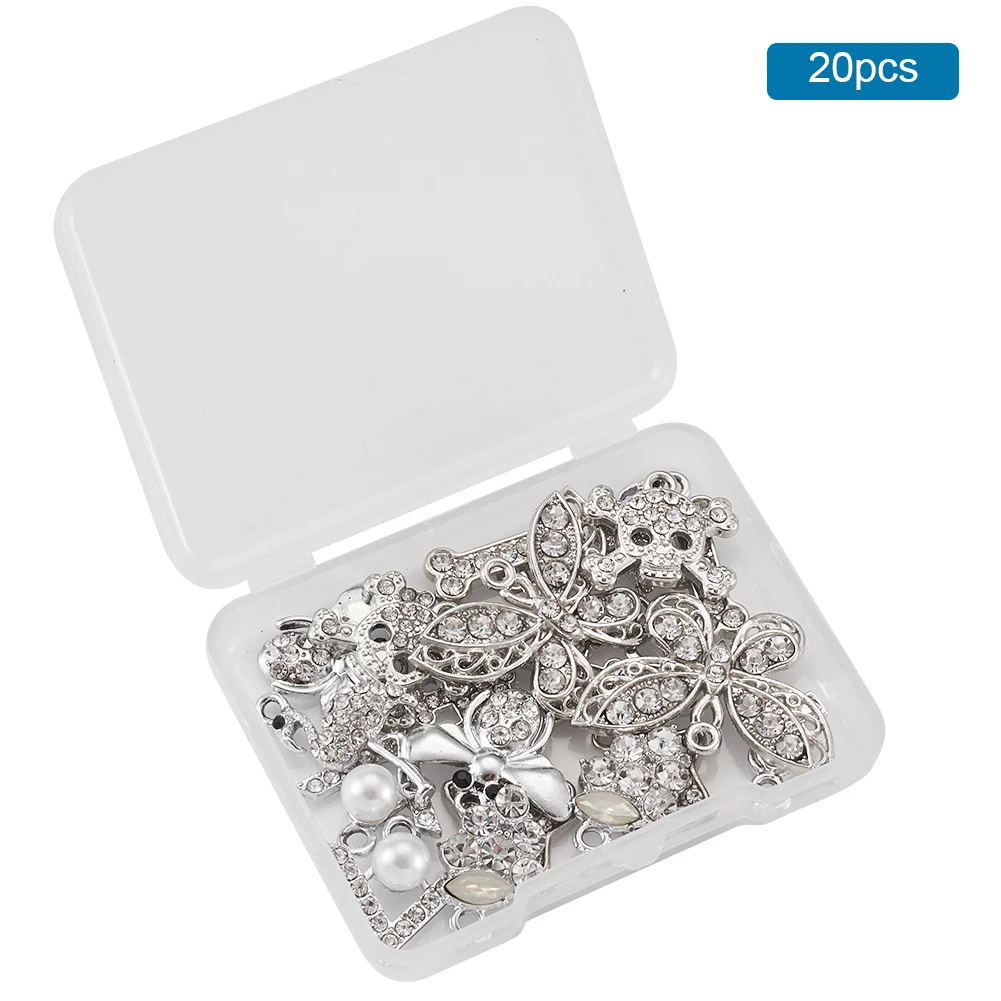 20 шт., стразы из сплава, подвески, смешанные пчелы, Бабочка, звезда, фламинго, крест, хрустальные подвески для самостоятельного изготовления ювелирных изделий, ожерелье, браслет