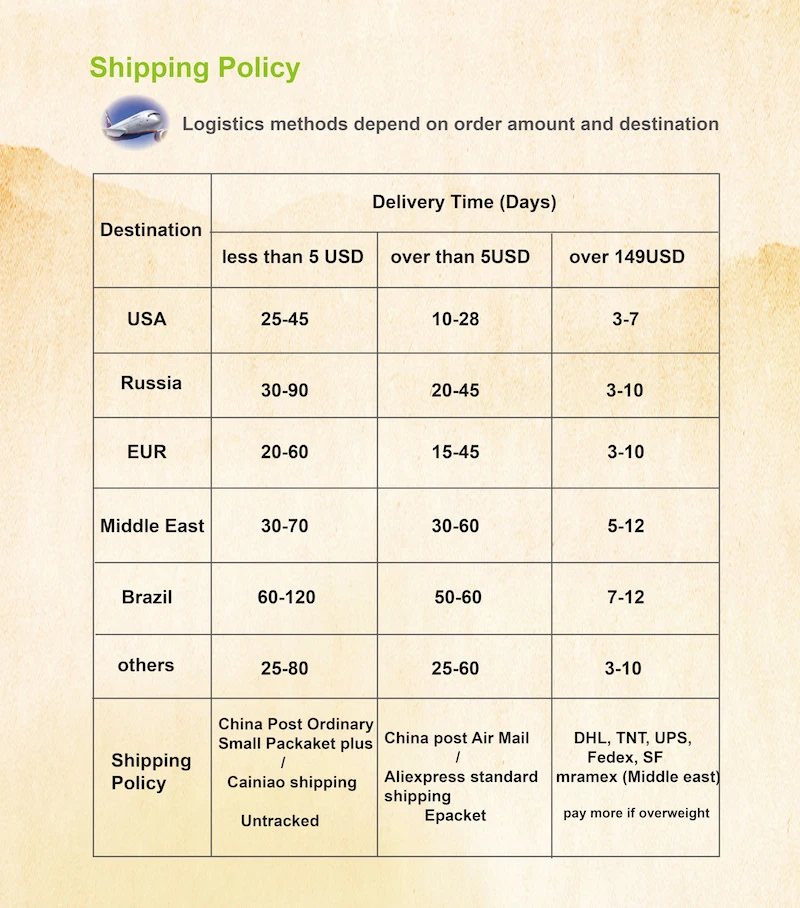 Способ доставки: Cainiao, авиа-отправление Почты Китая